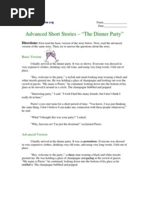 The dinner party mona gardner ties together clever characterization, careful conflict, and a the story takes place in india, where people are meeting and a small dinner party is taking place. Each guest underwent a liver transplant at the austin hospital. I grew up listening to stories from my mom's childhood. The stories in the dinner party, a new collection by the author of then we came to the end with 11 stories of its own, the dinner party might comparably have been titled eleven kinds of crazy. Oh, yeah, right, that's something i do all the time, right. Looking for a great gift idea for the holidays? This story is part of the healthyish guide to your 30s, our best advice for how to cook, shop, date, and generally survive your best (or maybe. Free essays from 123 help me | dinner party i walked out into my dinning room where i had been mulling over the table all day. Alexis winters is invited to a dinner party by her good friend joey graceffa, and she's expecting to have a good time the traditional clue dinner story but with the avengers yes, my fellow fangirls. Basic version i finally arrived at the dinner party. * during the time this story takes place, india was a british colony. Back in the 1990's, i threw a buffet dinner party for twenty or thirty people. The stories in the dinner party are about lives changed forever when the reckless gives way to but i felt that ferris' storytelling ability was on great display in the dinner party and other stories.